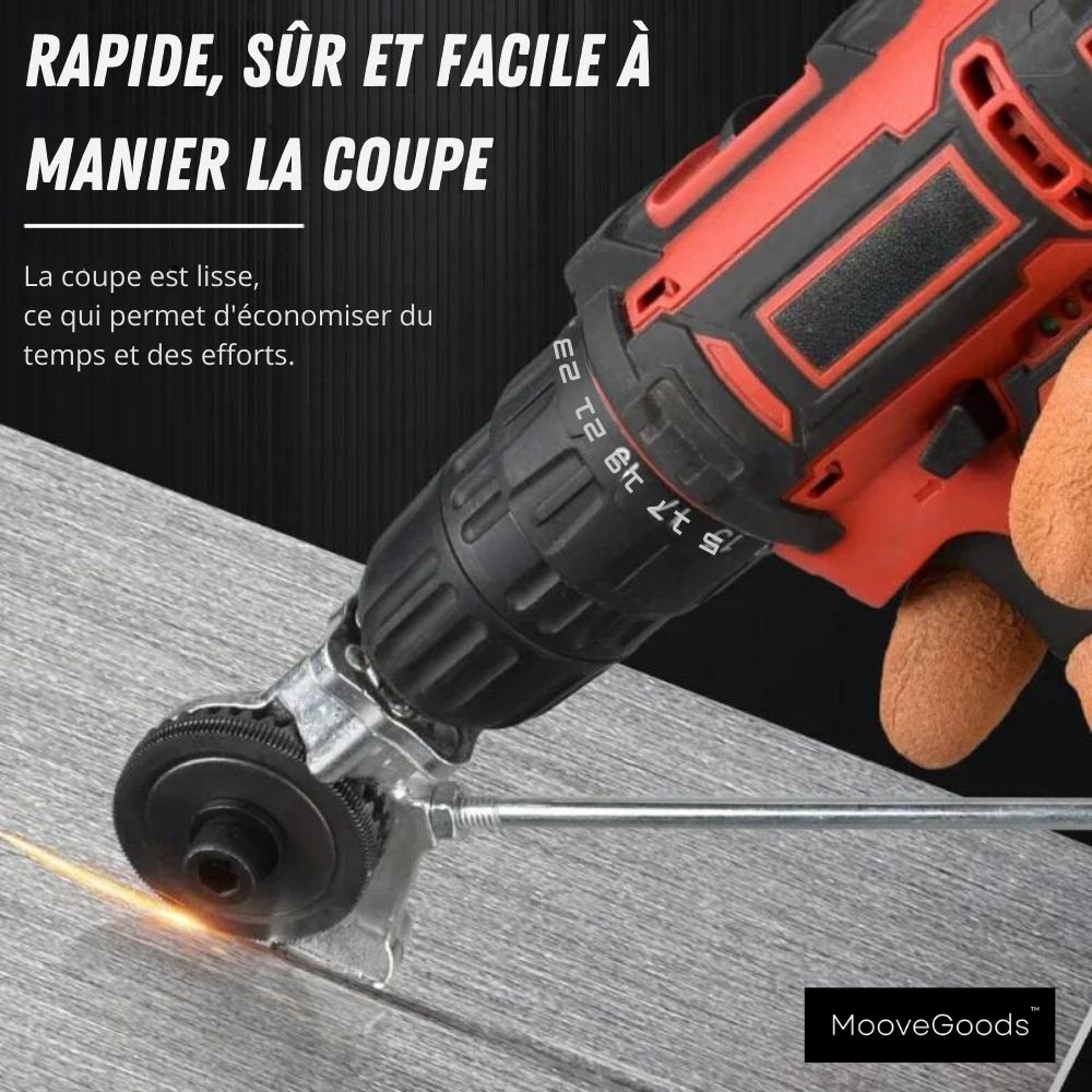 Transformez votre perceuse en un puissant outil de coupe de métal avec DrillCutPro™ : coupez efficacement les métaux et les tôles, maximisez la précision et facilitez vos projets de bricolage et professionnels avec confort et efficacité.