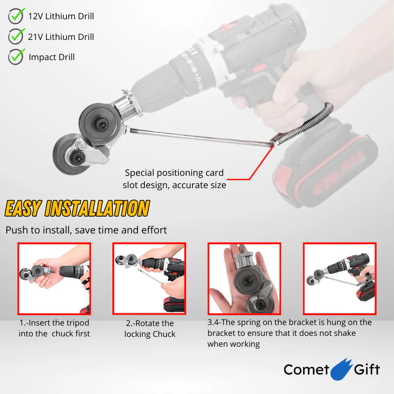 This cutting adapter installs easily and quickly onto your drill, transforming it into a versatile and efficient metal cutting tool. Say goodbye to complications and hello to efficiency!